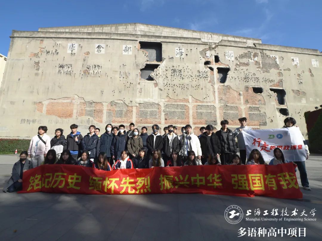上海工程技术大学多语种高中项目自开办起始终重视在校学生的爱国主义思政教育工作,专门将“综合素养课”纳入本校常规教学,并通过不断开辟“行走的思政课堂”走出校园,丰富和完善思政教育形式和内容,让学生们近距离切身感受家国情怀,增强爱国意识。