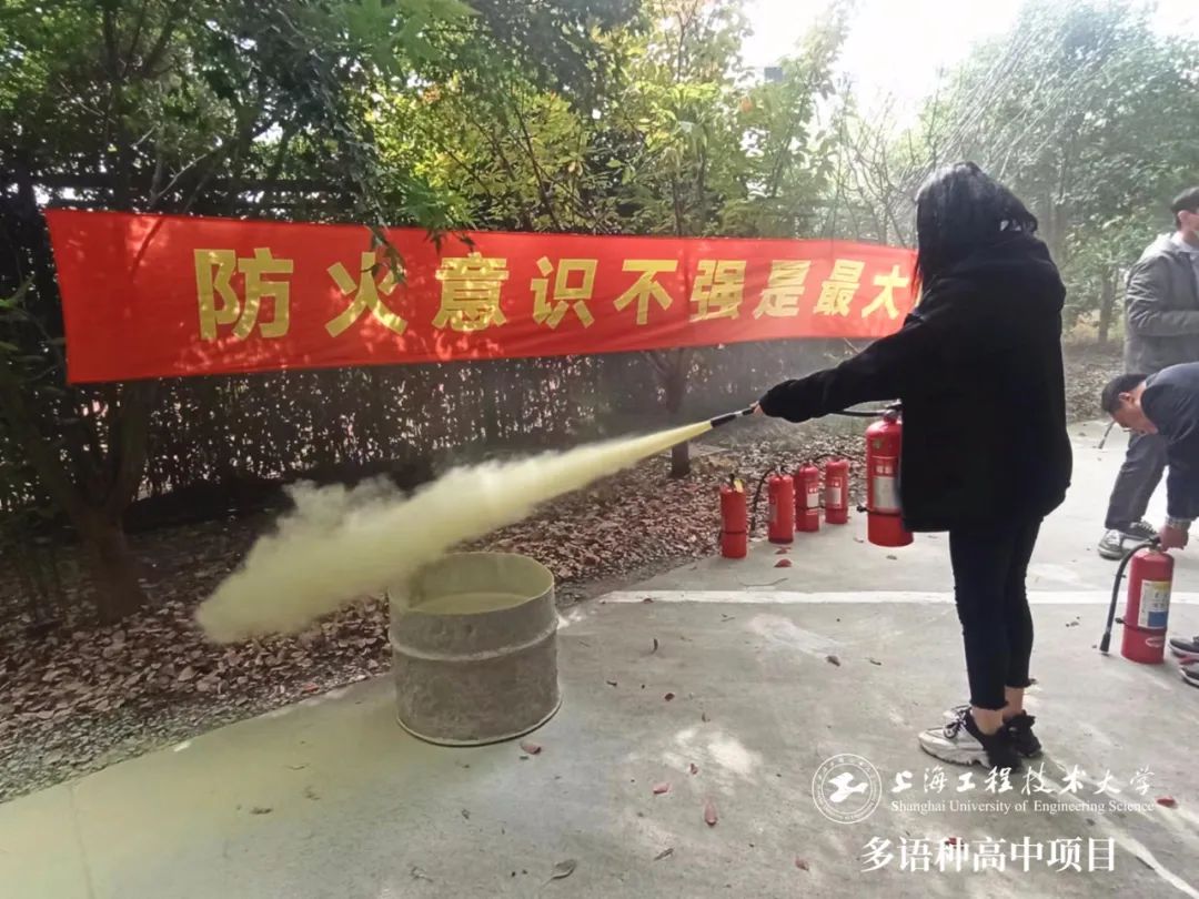 通过老师的现场讲解和视频素材解说,大家学习了校园安全的相关法规和消防自救常识,并掌握和体验了灭火器的正确使用方法。