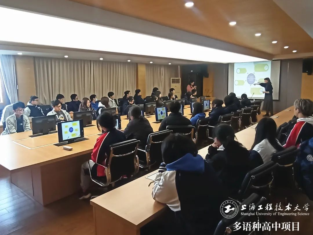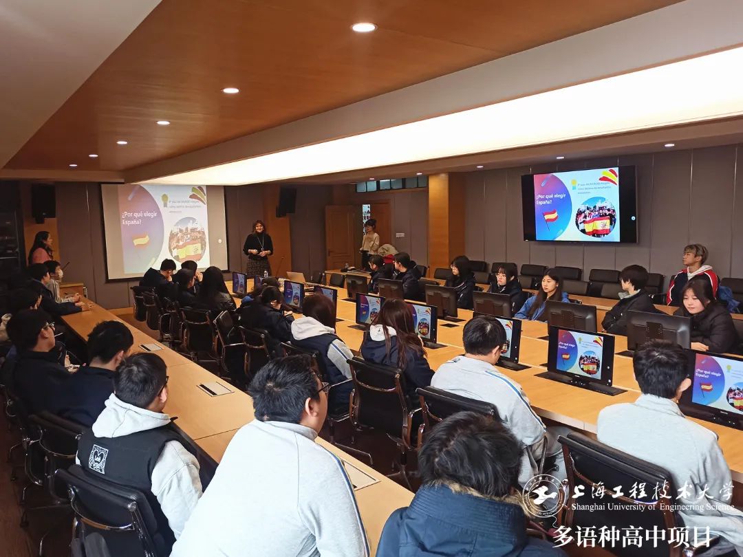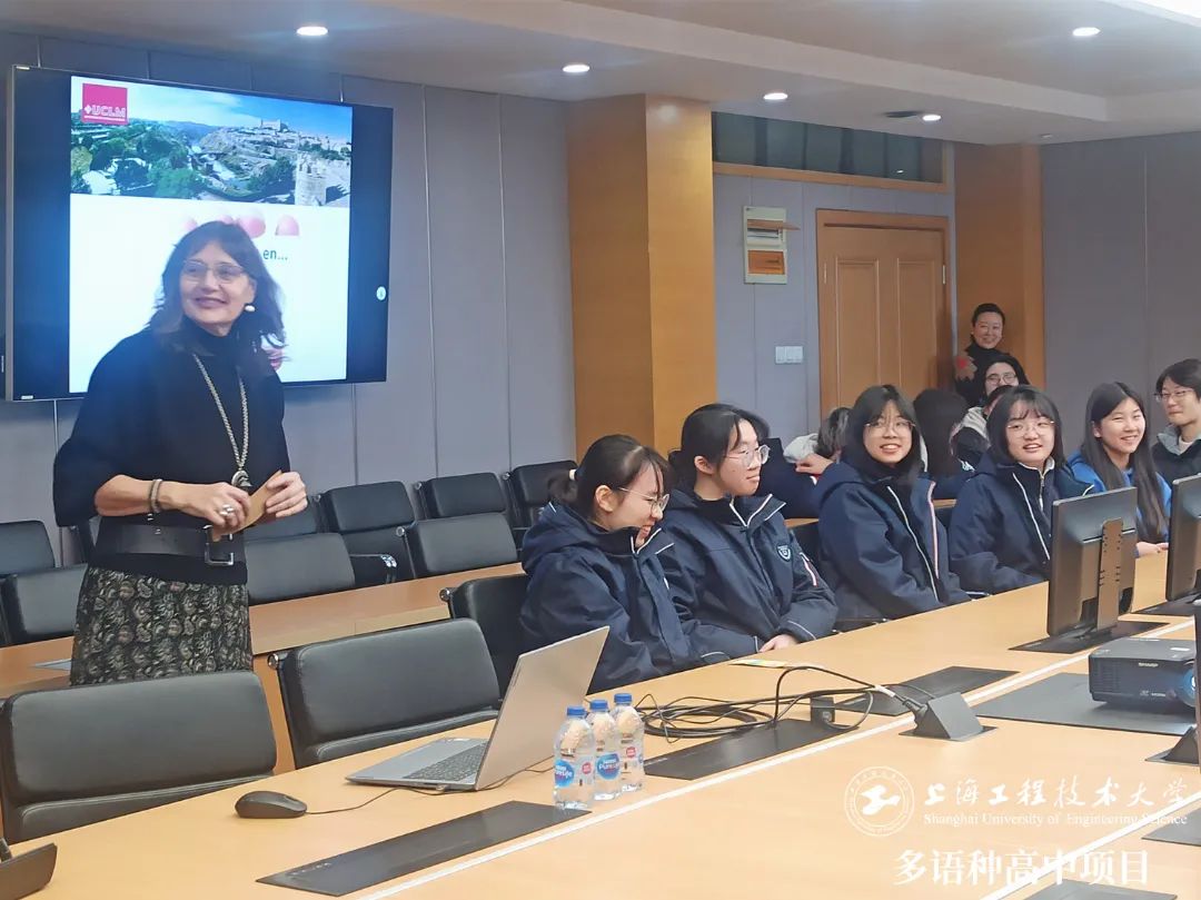 12月4日上午,西班牙公立卡斯蒂利亚拉曼查大学国际合作处主管及中国学生项目负责人Gloria Jordán Giménez女士来到上海工程大多语种高中项目,为西班牙语班学生做大学介绍并进行现场交流。