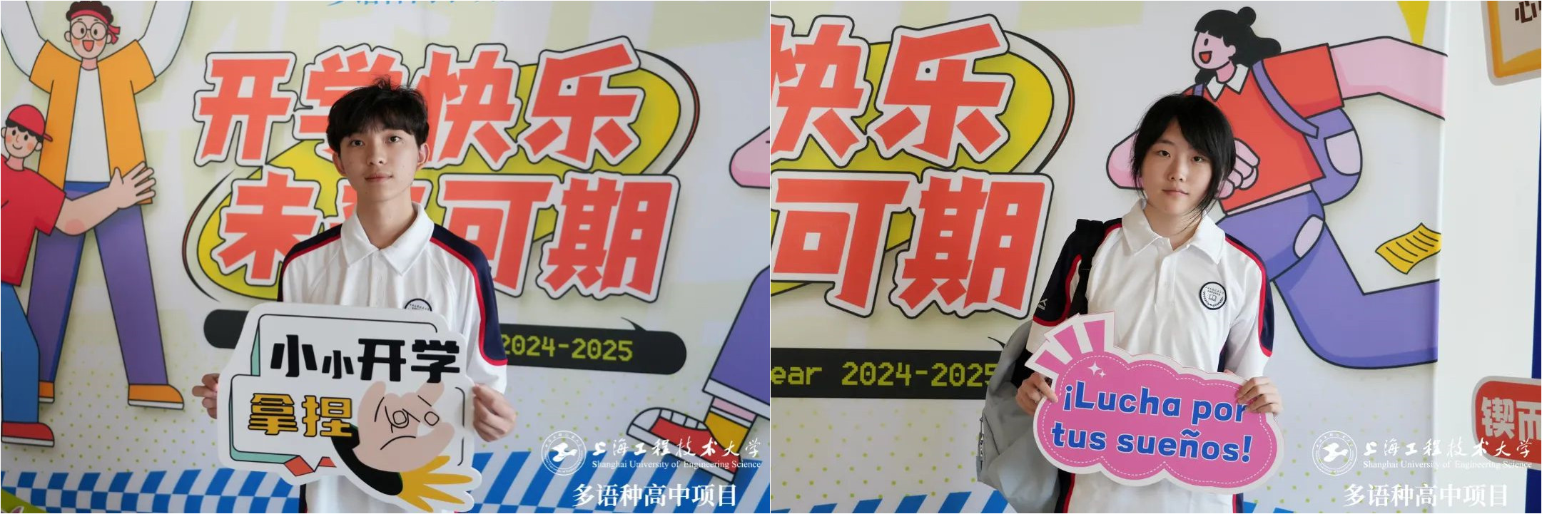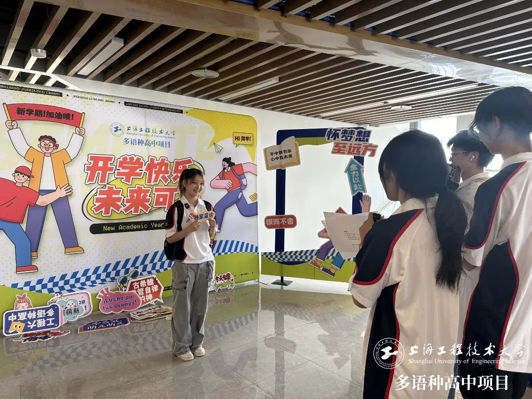 随着九月的秋风轻拂,上海工程技术大学多语种高中项目迎来了新一届的学子。当清晨的阳光洒进校园,学长们已经面带微笑,手持欢迎牌,在大门口迎接新生的到来。一句句“欢迎来到多语种高中”,不仅是对新生的问候,更饱含对新生未来学习生活的美好祝愿。从晨光初现到夜幕降临,每一位同学都度过了忙碌又充实的高中第一天。