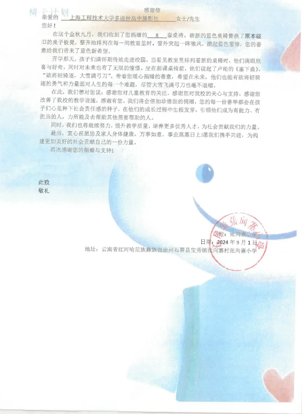 ▲ 摄影社收到受捐学校寄来的感谢信