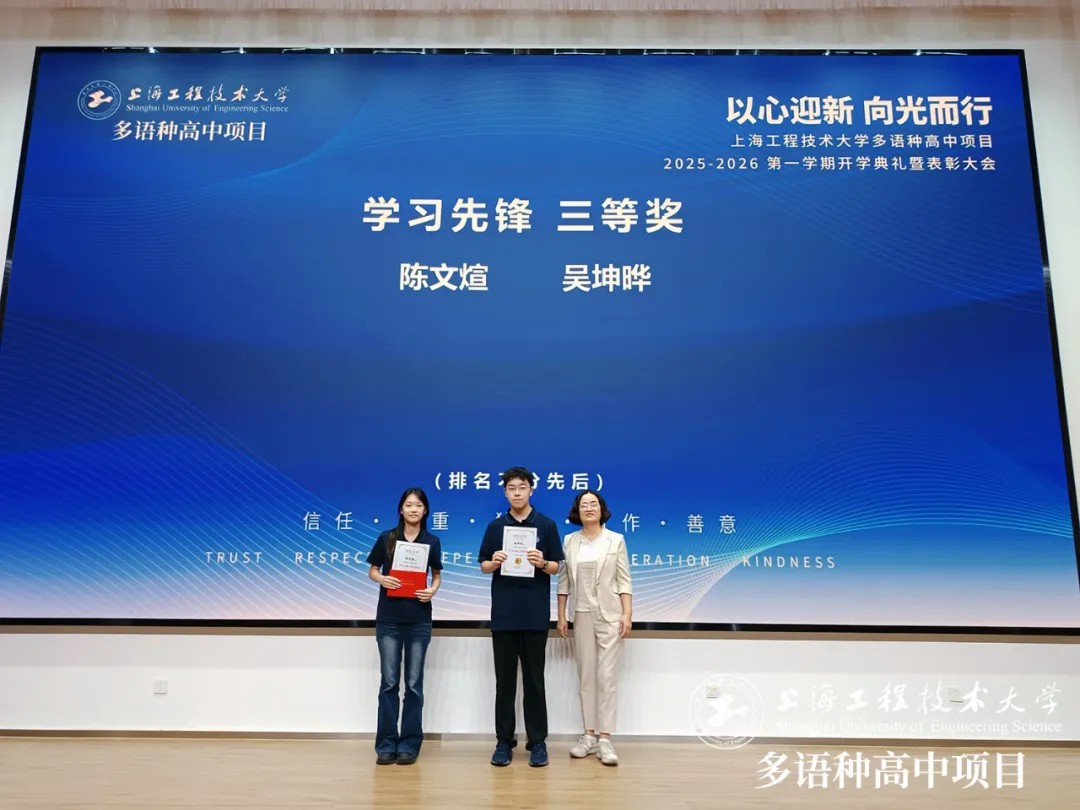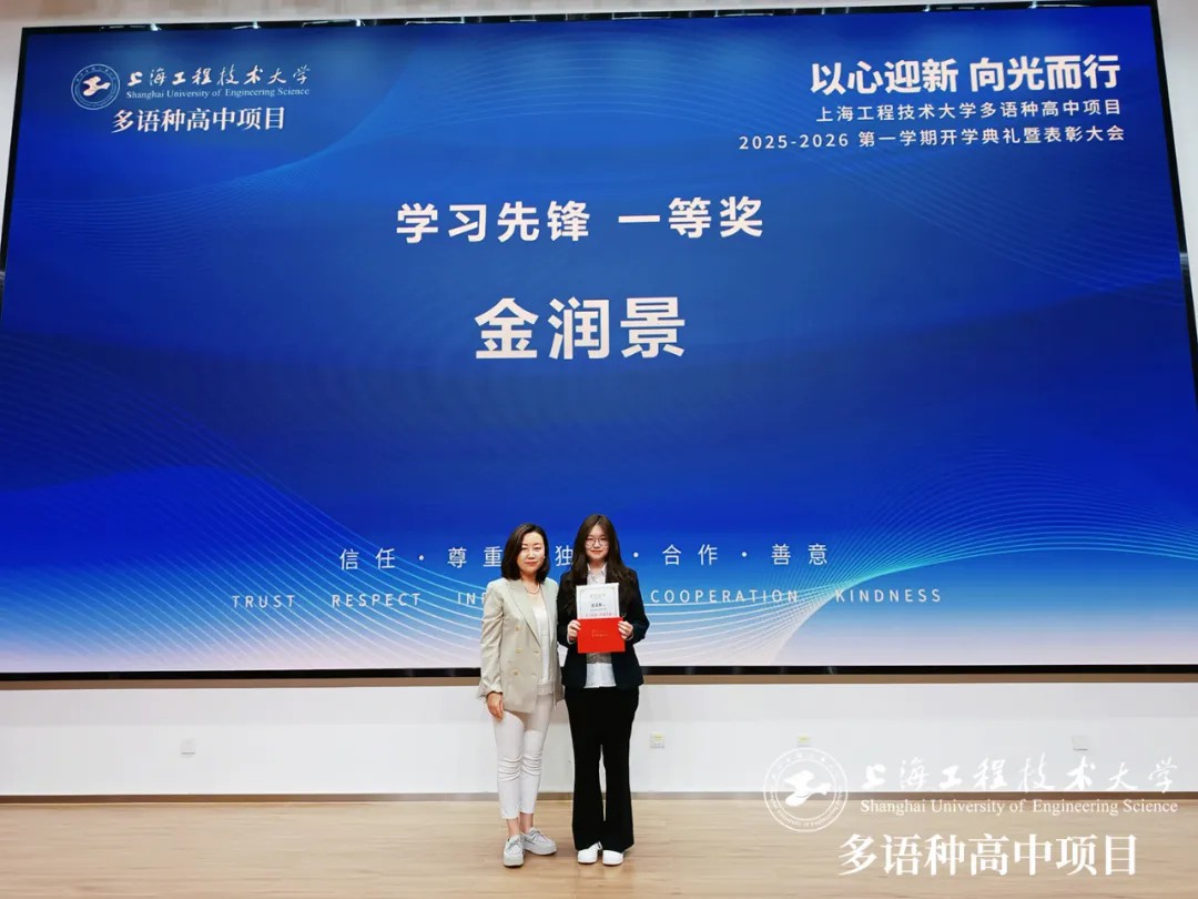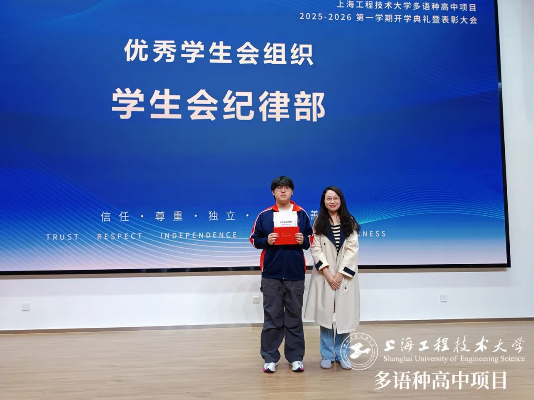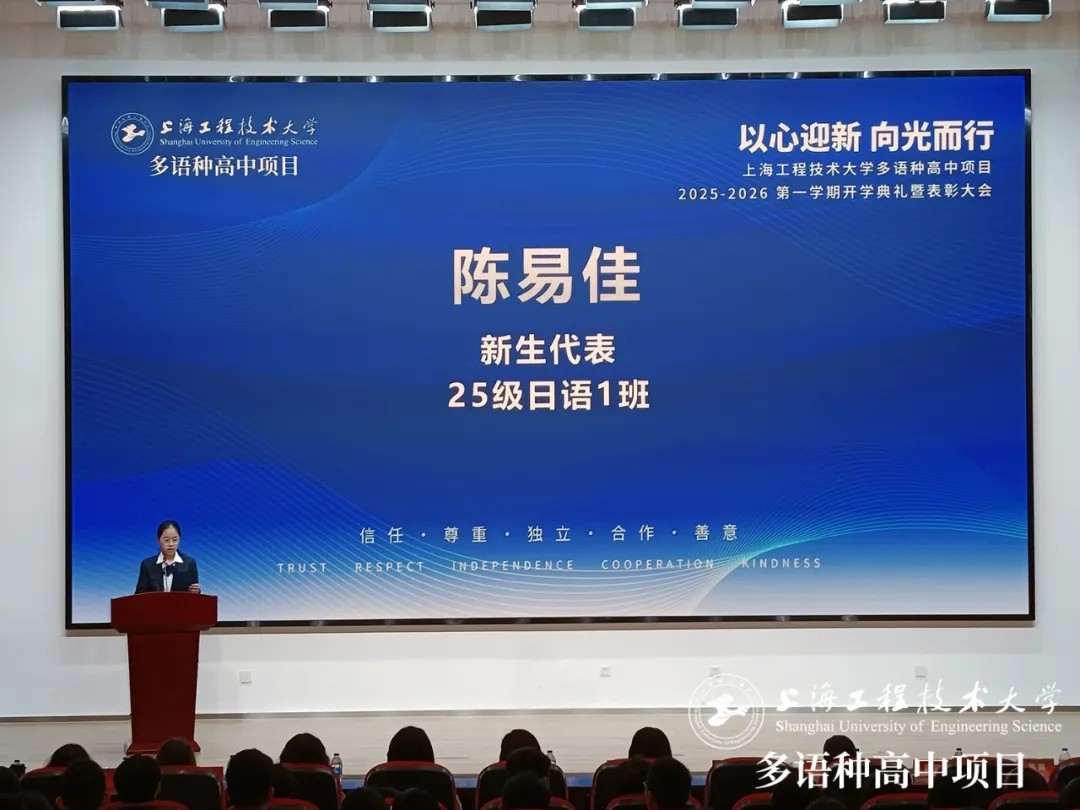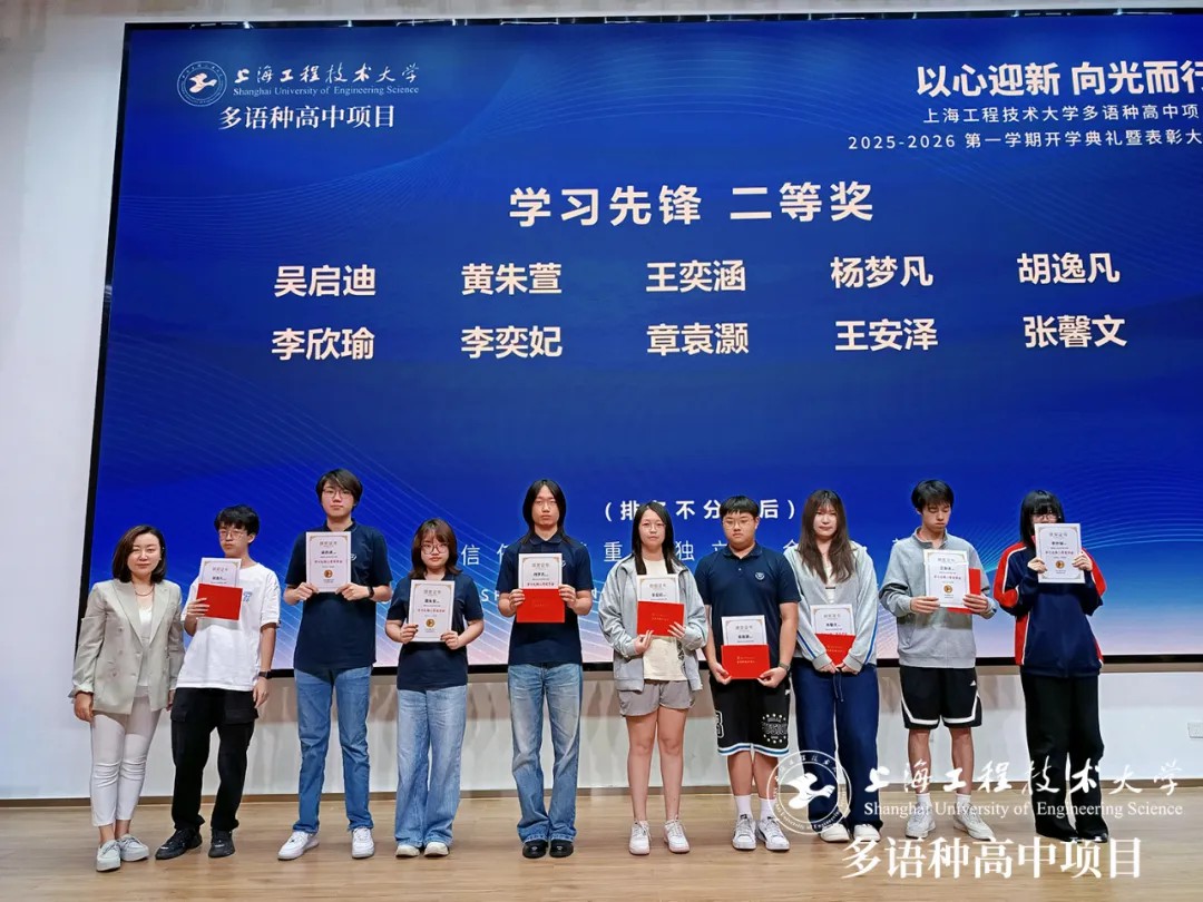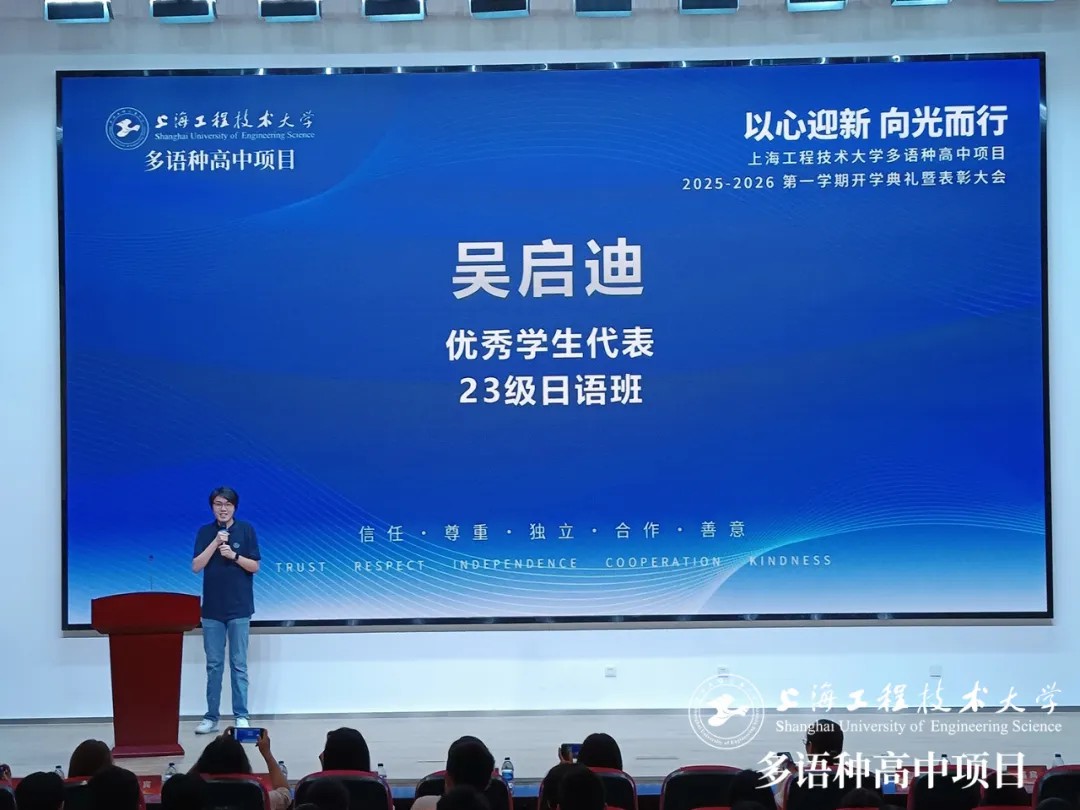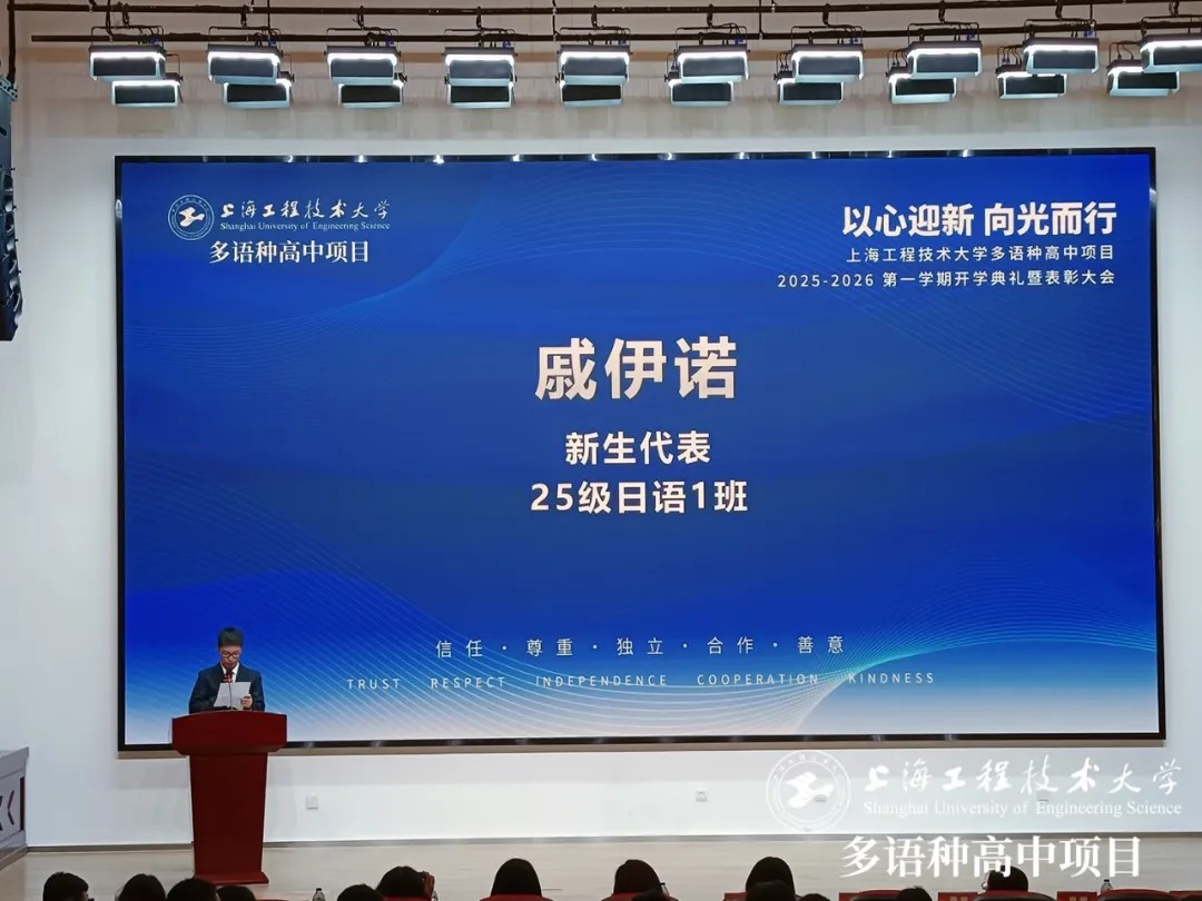 9月12日上午,上海工程技术大学多语种高中项目2025-2026学年第一学期开学典礼暨表彰大会在产教融合大楼一楼报告厅成功举办。
