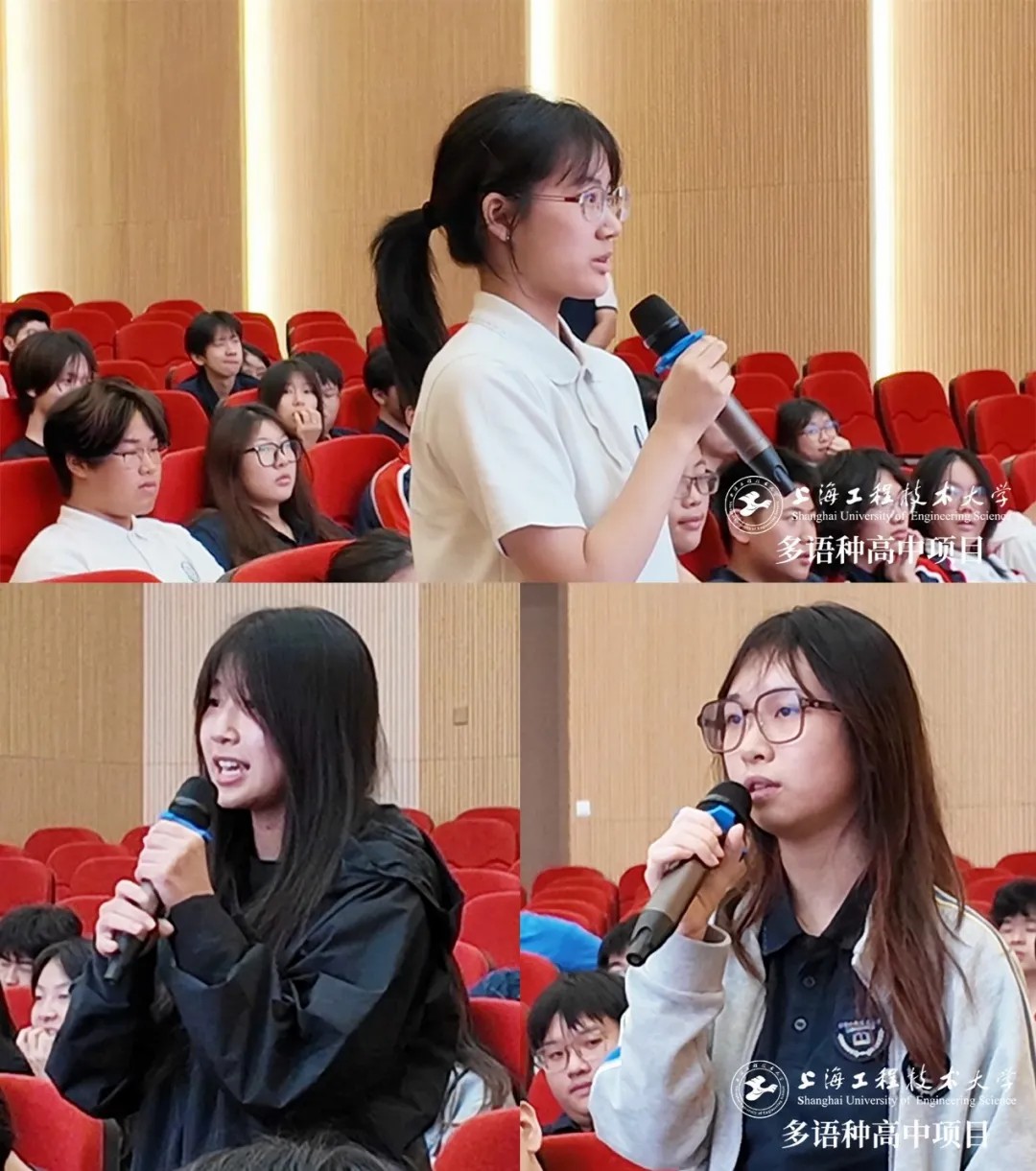 在讲座的互动环节中,穆尔西亚大学的两位教授与我校师生展开了热烈的问答交流。面对同学们的积极提问,现场气氛轻松而热烈。来自不同年级的学生们用西班牙语提出了有关学校食物、毕业难易度以及课后辅导相关安排等问题。两位教授对学生们流利的西语表达给予了高度评价,称赞他们不仅具备扎实的语言能力,还能在实际场合中自信地沟通交流。