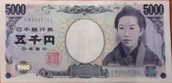5000日元是樋口一叶,日本著名女作家,是日本文坛象征。这是日本唯一以女性人物做纸币头像的人物,在世界范围内也是少有的。她是十九世纪日本著名平民作家,是日本近代现实主义文学的早期开拓者之一。在她短短24年的人生中,创作了大量反映当时社会现状、关注日本女性的优秀作品,成为当时妇女社会角色变化的先驱。