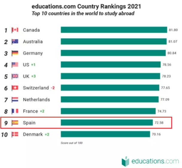同样,在educations.com创建的2021年最佳出国留学目的地排名中,西班牙也位列前十!