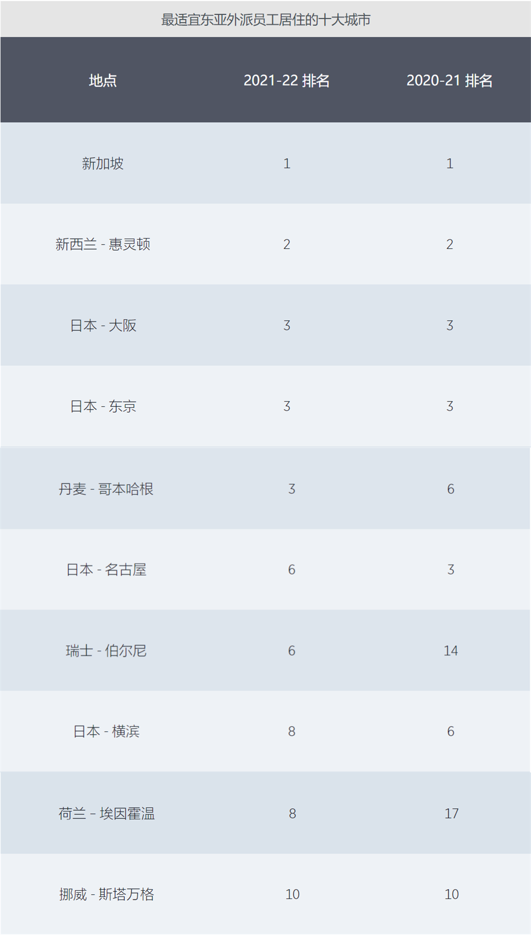 近日,ECA International 发布了最新的宜居城市排名,多个亚太地区城市受持续的封闭性防疫措施影响,导致它们在宜居城市的排名中出现下降。