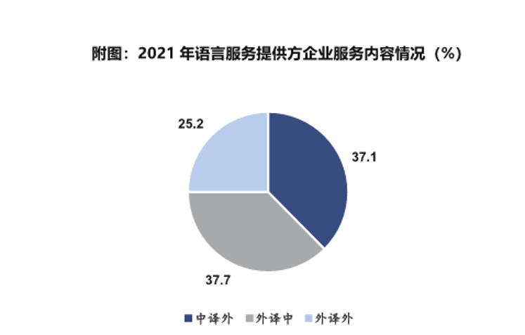 “中译外”和“外译中”服务内容在语言服务业务中分别占37.1%和37.7%,“外译外”的业务占25.2%,相较前两年提升了10%。