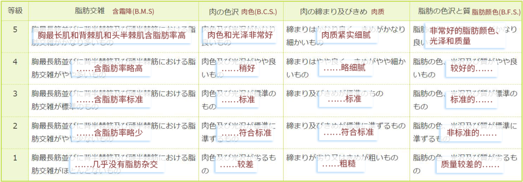 2、肉质等级