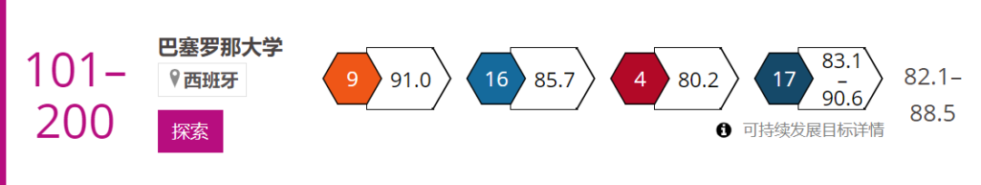 第101-200名:巴塞罗那大学、赫罗纳大学、哈恩大学、穆尔西亚大学、罗维拉-威尔吉利大学、瓦伦西亚大学