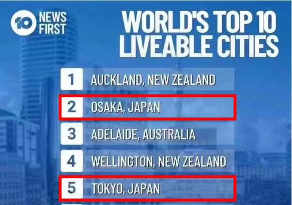 英国《经济学家》杂志以世界140个城市为对象,在安全性、医疗、文化环境、教育、基础设施等共计30个项目上进行评价,发布了2021年全球最宜居城市的排行榜,其中东京排名第5,大阪高居第2名。