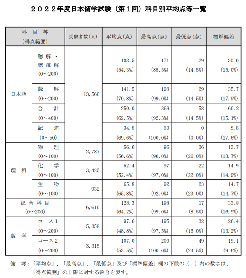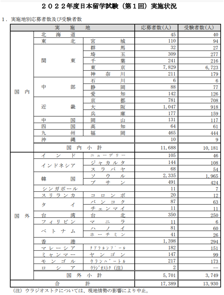 目前第一次考试已经结束了,第二次考试的报名也在7月29日截止。日本学生支援机构公布了2022年度第一次日本留学考试的实施结果。