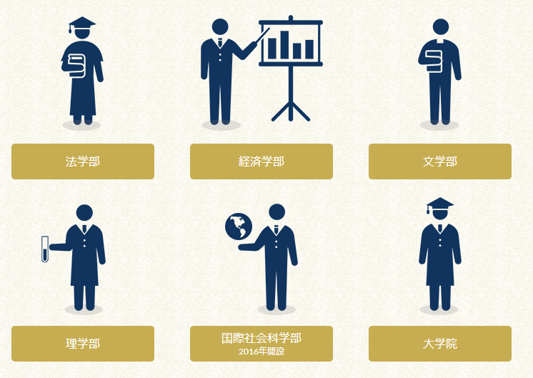 学部:法学部、经济学部、文学部、理学部、国际社会科学部