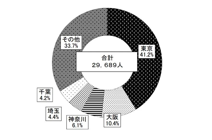 从就业地区来看,东京占比41.2%,再加上千叶4.2%、琦玉4.4%和神奈川6.1%,选择在东京圈就业的占比达到了55.9%。大阪占比10.4%。