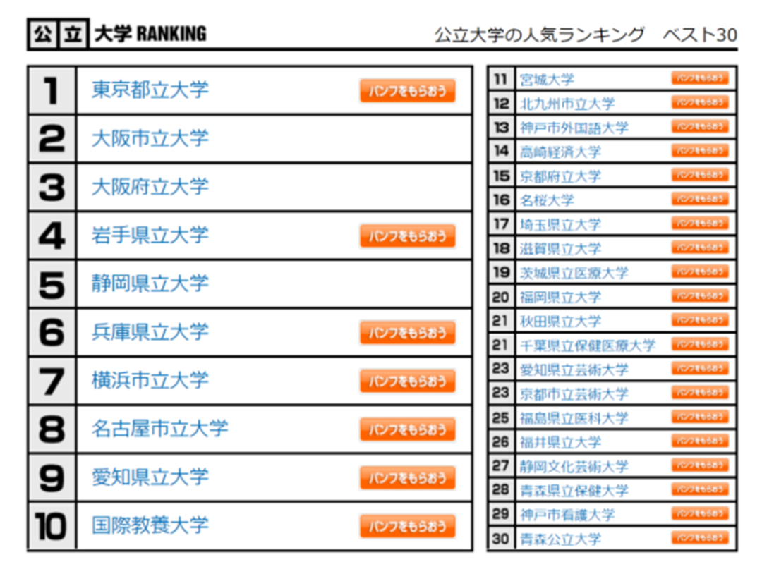 近期,日本对此进行了调查,根据219958名高中生为对象进行了问卷调查,发布了国立大学、公立大学、私立大学的人气排行榜。
