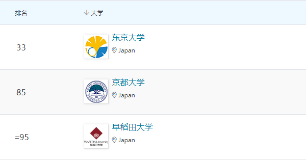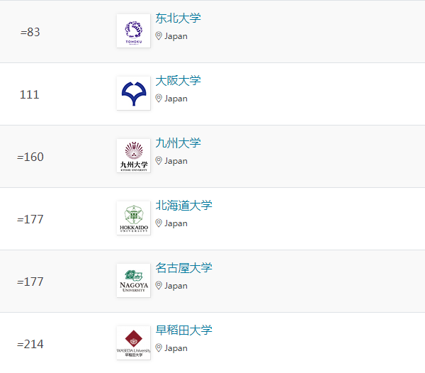 在艺术与人文领域,东京大学、京都大学、早稻田大学位列全球百强。