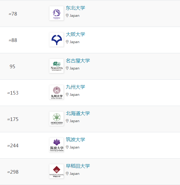 在工程与技术领域,东京大学、东京工业大学、京都大学、东北大学位列全球百强。