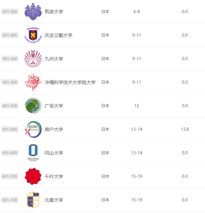 ◆北海道大学、东北大学(仙台)、筑波大学、庆应义塾大学、九州大学、冲绳科学技术大学院大学、广岛大学位于世界前500强。