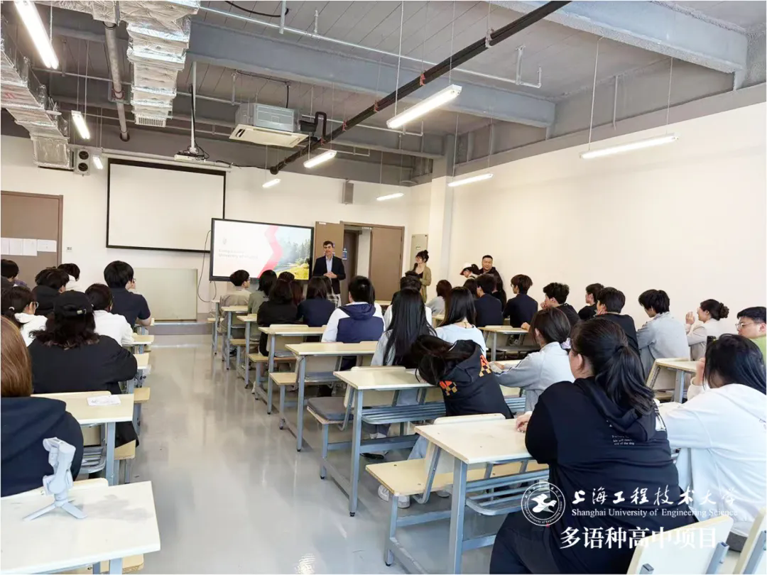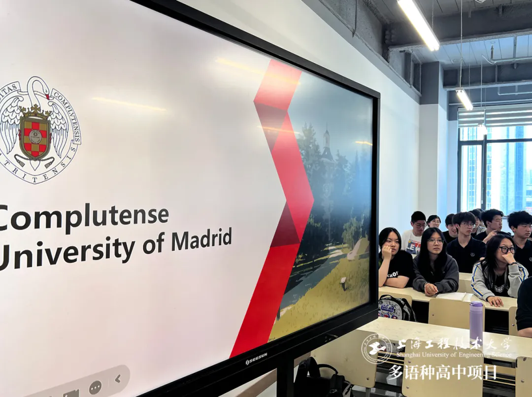 本周,上海工程技术大学多语种高中校园内洋溢着浓厚的国际交流氛围。马德里康普顿斯大学国际事务负责人胡安・卡洛斯(Juan Carlos)到访我校,为师生带来一场关于马德里康普顿斯大学的精彩讲座,深度分享这所西班牙顶尖学府的独特魅力与教育优势,进一步推动两校在国际教育领域的合作交流。